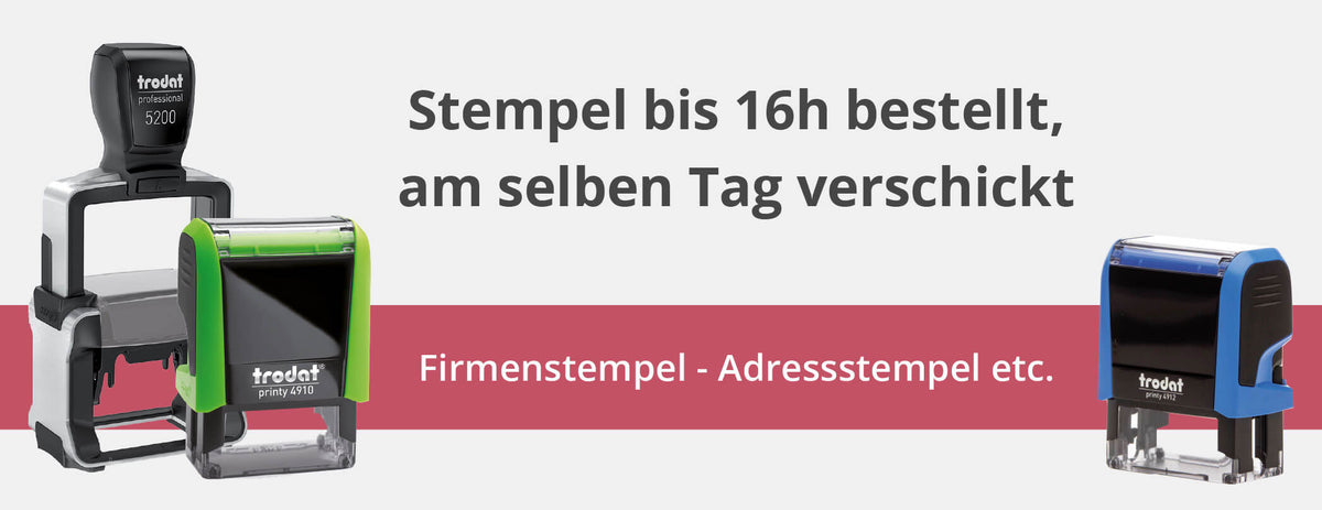 Hier finden Sie Ihr Stempelmodell für den geschäftlichen wie privaten Gebrauch in unseren Stempel-Kategorien.