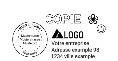 Seulement chez nous - Commander des tampons EASY : Créez d'abord votre empreinte dans notre outil de conception (TEXTE, GRAPHIQUE, TEXTE & ; GRAPHIQUE) et laissez ensuite notre système afficher les modèles qui vous conviennent.