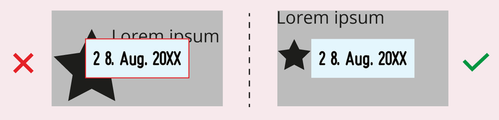 Veillez aux dimensions exactes pour les tampons dateurs, car le champ de la date est découpé.