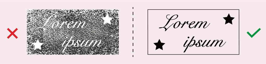 Évitez par conséquent les grandes surfaces et les graphismes inverses lors de la conception de votre tampon.