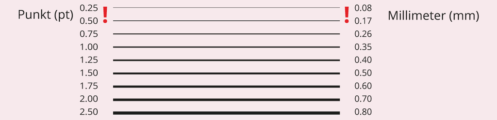 Pour les lignes isolées, nous recommandons une épaisseur minimale de 0,75pt ou d'environ 0,3mm.
