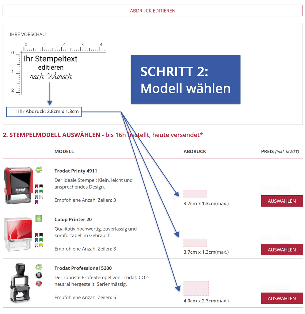 Sobald Sie alles geprüft haben, lassen Sie sich von unserem Shop die passenden Stempelmodelle anzeiten.